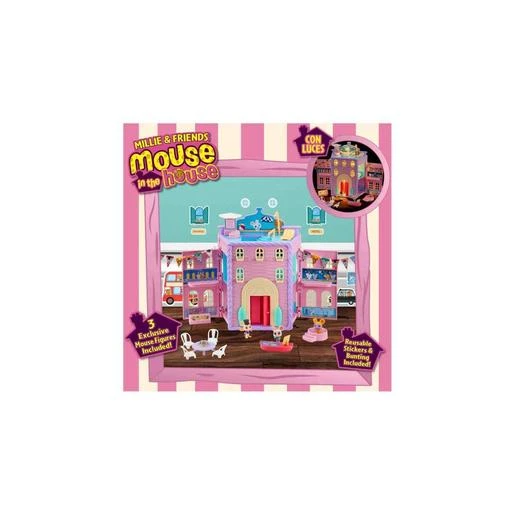 Este maravilloso playset incluye dos cuerdas de banderines decorativos que se pueden colgar en sus paredes. Tus hijos podrán personalizar el hotel a su gusto, creando así un ambiente más ameno y original. Además, pueden combinar este gran hotel con otros sets y figuras de “Mouse in the House” para construir un mundo lleno de diversión e imaginación en Mouseville.