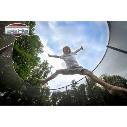El sistema de muelles Twinspring de doble muelle en forma de «v» , aumenta el área de salto perfecto y aporta mejor confort en el salto. La lona elástica tiene unos poros más abiertos que dejan fluir el aire con más libertad, es la llamada tela Airflow que junto con los muelles twingsping favorecen los mejores saltos. La estructura del trampolín está bien protegida para el exterior y tiene un elegante color negro que le da una protección extra. La red de seguridad Deluxe bien integrada en la cama elástica mantiene siempre la red firme. La cama elástica Berg Champion tiene un borde protector muy ancho y grueso disponible en los colores verde o gris.