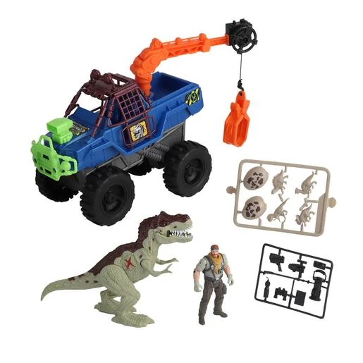 Incluye 1 figura, 1 dinosaurio, 1 camión con clip para capturar el dinosaurio y muchos más accesorios.