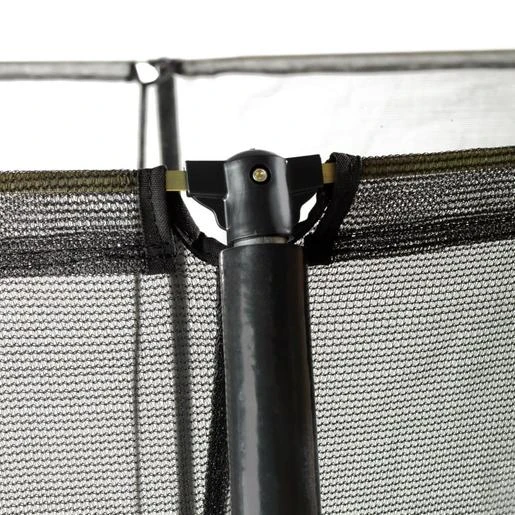 La red de seguridad, que viene de serie con el trampolín en las patas, está equipada con postes curvos para que la red esté tensa.