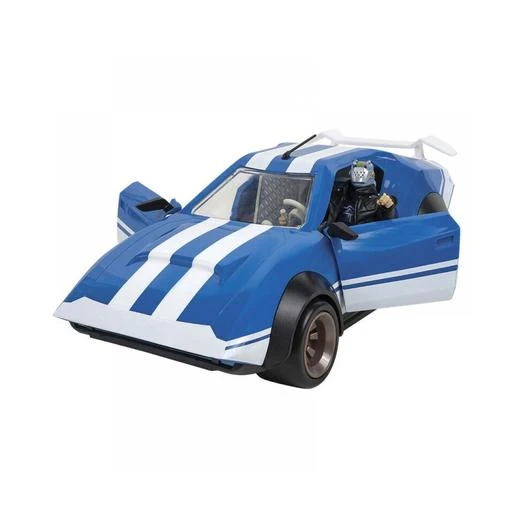 Cuenta con movimientos de rueda libre y el coche tiene espacio para 4 figuras. Se venden por separado.