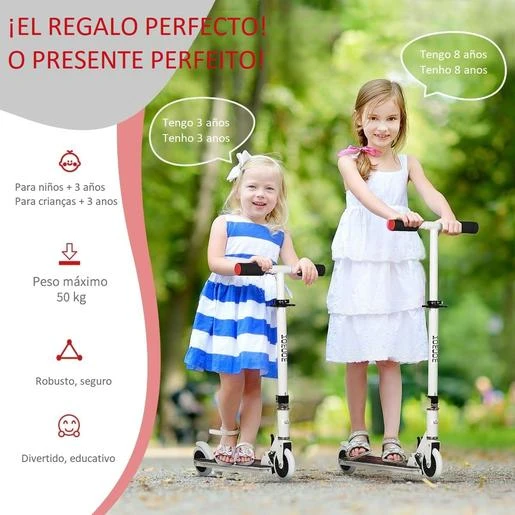 Homcom – Patinete plegable blanco-negro, un patinete para niños a partir de tres años.