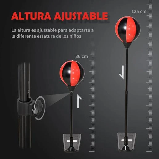 Como se ajusta en altura de 86 cm a 125 cm podrán utilizarlo varios usuarios de diferentes estaturas. No lo dudes más y regálales esta peana de boxeo infantil original y beneficiosa para la salud.