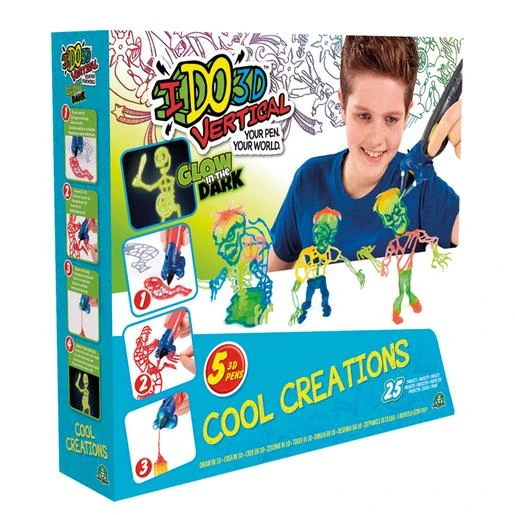 El IDO 3D – Zombies incluye 5 bolígrafos que brillan en la oscuridad, 1 luz vertical, 1 lámina de plástico para impresión 3D, 1 guía y accesorios. Lleva el arte al próximo nivel y dale vida con IDO 3D. Empieza a dibujar verticalmente, con distintos colores y con distintos temas. Haz espectaculares creaciones en 3D y, ¡puedes hacer hasta 10 proyectos diferentes! Funciona con pilas. Pilas NO incluidas. Edad recomendada: +5 años.