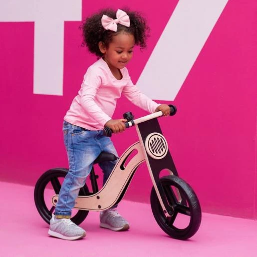 Bicicleta Aprendizaje Uniq Madera Natural. Uniq es una bicicleta de equilibrio única de su tipo que está diseñada para los niños a partir de los 2 años de edad. Gracias a la regulación del asiento, colocado en un soporte de metal, y a una estructura segura y resistente hecha de madera de abedul, la bicicleta le va a servir al niño durante muchos años. Además, es increíblemente ligera y posee dos asas de transporte cómodas. Podrás llevarla contigo a donde quieras.