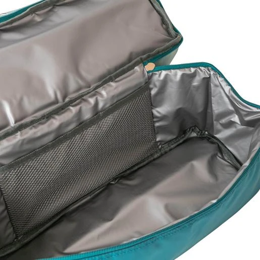 Cuenta con diseño marítimo y un apartado independiente con cierre de cremallera que funciona como nevera.
