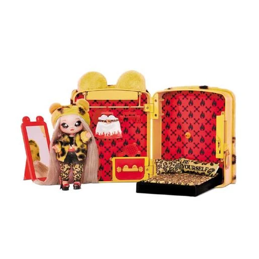La mochila-dormitorio de las Na! Na! Na! Surprise, tiene inspiración animal. Es blandita y muy suave. Un acogedor playset dormitorio con cama incluida. Incluye una exclusiva muñeca y ¡mucho más!
