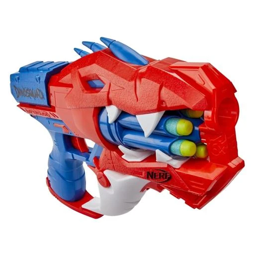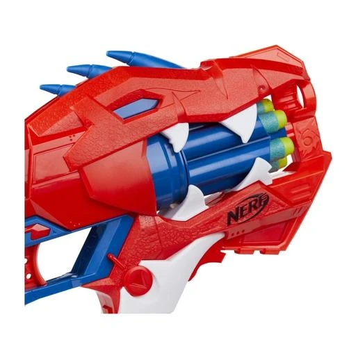 Tiene un impresionante diseño que replica la apariencia de un dinosaurio Velociraptor. ¡Parece que los dardos salen de las fauces del dinosaurio!
