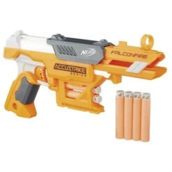 Nerf Elite – Falconfire, un lanzador y 6 dardos Accustrike. El lanzador tiene una empuñadura texturizada y una recámara en la parte superior. Los dardos fueron diseñados para una mayor precisión. ¡Los dardos Nerf más precisos! El lanzador Falconfire y los dardos son de la serie Nerf Elite Accustrike. ¡Da en el blanco con la máxima precisión! Edad recomendada: +8 años.