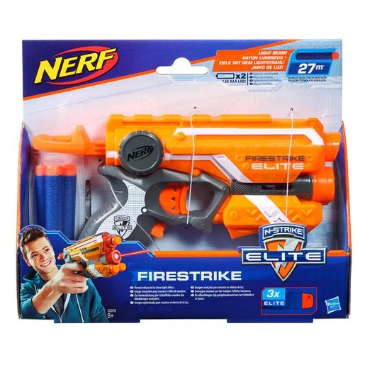 Nerf – Elite Firestrike DYD-12 (varios colores), un lanzador Nerf de la serie Elite para aventuras llenas de emoción. Un lanzador compacto con rayo de luz roja para apuntar al objetivo. Incluye 1 lanzador, 3 dardos. ¡Alcanzan más de 20 metros! Son necesarias 2 pilas AAA. Pilas NO incluidas. Edad recomendada: +8 años.