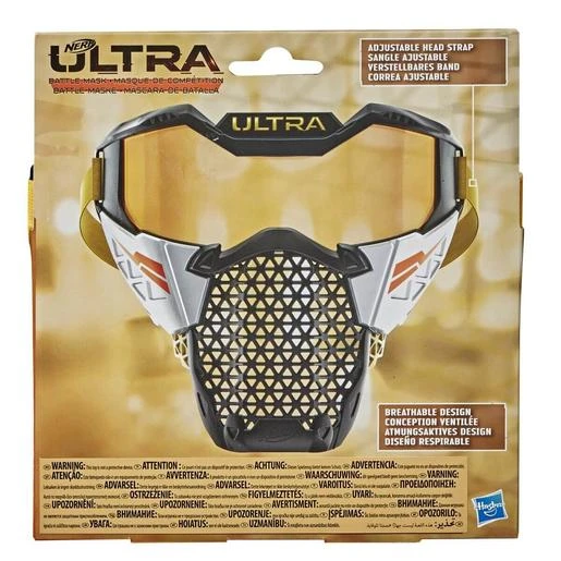 Nerf – Máscara Ultra Battle, una máscara de combate de alta calidad, con elástico regulable y acolchado para un ajuste confortable.