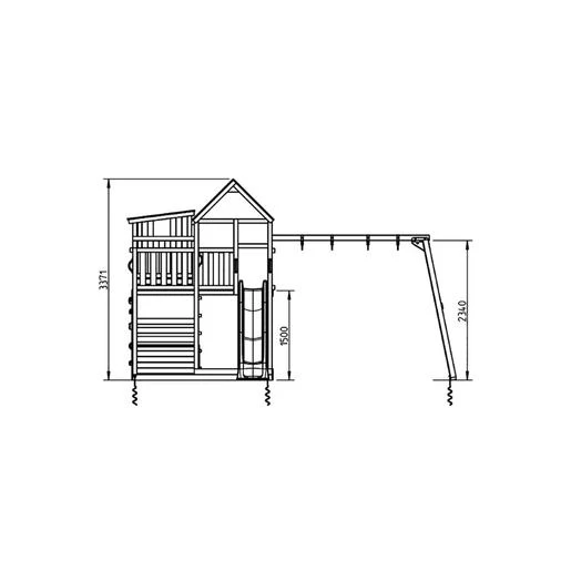 Las medidas de la cabaña son: 143 cm (largo) x 124 cm (ancho) x 100 cm (altura más baja). La altura de la plataforma del tobogán es de 1,50 m. La altura de la plataforma de la casita es de 1,70 m. La rampa del tobogán es de 3 m de largo. Debe dejar 2 metros alrededor de zona de seguridad.