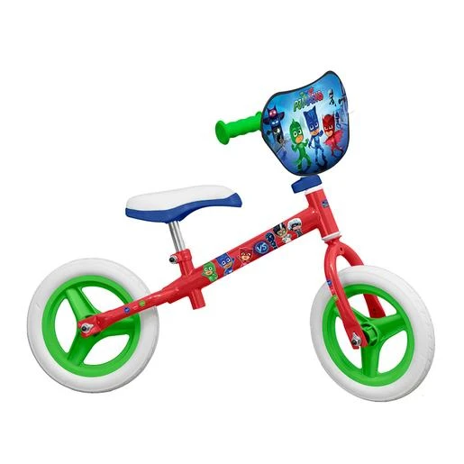 PJ Masks – Bicicleta de Aprendizaje, una bicicleta de 10′, sin pedales, con ruedas plásticas de goma eva y porta imagen delantero decorado con la imagen y los colores de PJ Masks. Esta bicicleta permite que los niños aprendan a mantener el equilibrio necesario para caminar sobre dos ruedas y facilita el paso a la bicicleta con pedales.