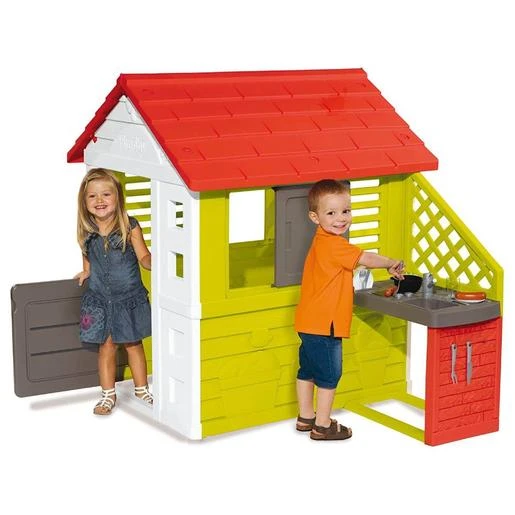 Smoby – Casita infantil Nature II,casa infantil con cocinita al exterior.