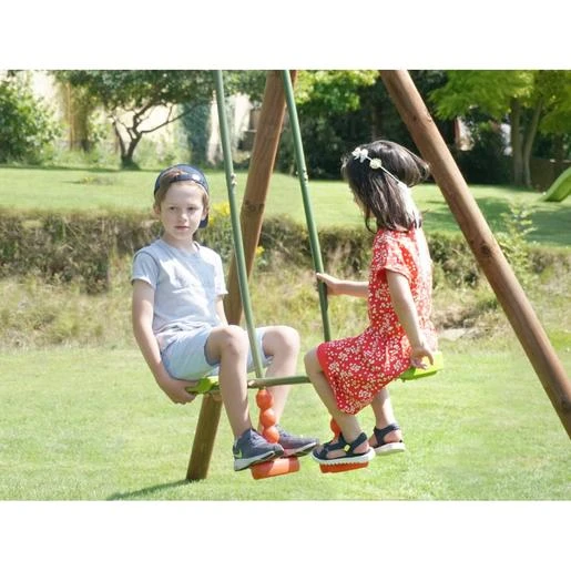 Capaz de soportar un peso máximo de 70 kg, (35 Kg por cada niño) este balancín se adapta a pórticos de 222 cm de altura.
