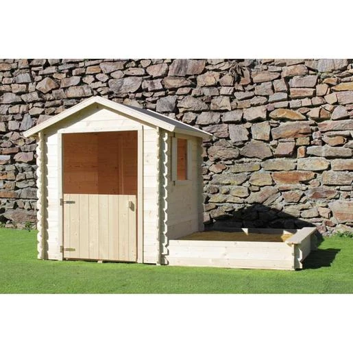 Esta casita cuenta con un arenero en un lateral (arena no incluída).