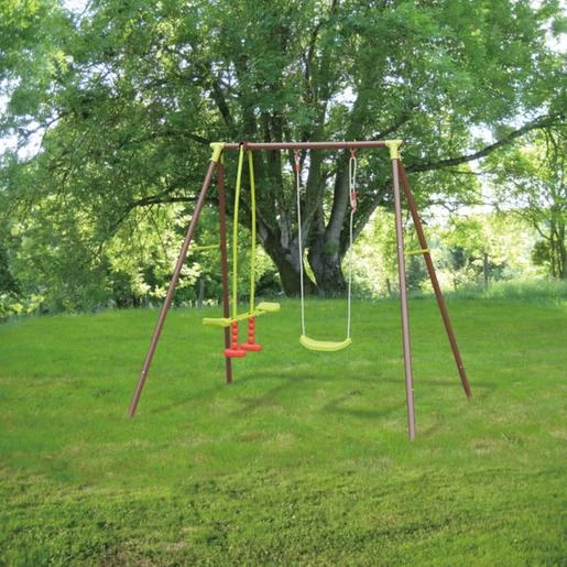 Forest Style – Columpio de acero Acier 1B1V Prune. La diversión empieza al aire libre. Verás cómo disfrutan los peques con estos columpios, ideales para el jardín. Son seguros y divertidos, son el juguete para la calle con el que todos sueñan.
