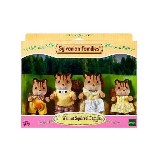 Sylvanian Families – Familia Ardillas de la Nuez, un set de 4 figuras de ardillas que habitan en la Casa Grande Ciudad con Luces. La familia viene con papá, mamá, hermano y hermana Ardilla de la Nuez. Figuras suaves de material flocado y aterciopelado con mobiliario y accesorios de detalles de gran calidad. Edad recomendada: +3 años.