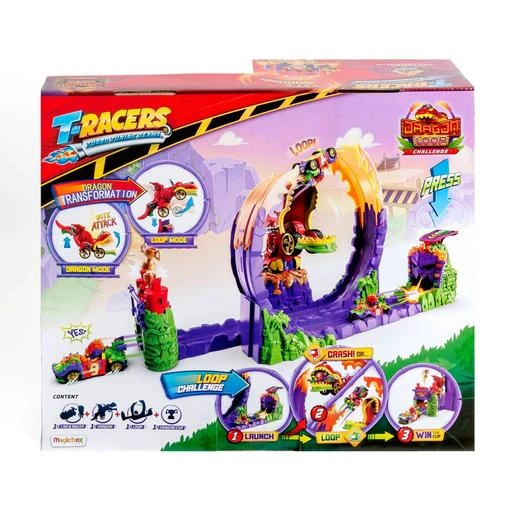 ¡Demuestra que eres el mejor y más valiente de los T-Racers con Dragon Loop! Looping extremo: El dragón está preparado para engullir a cualquiera que se atreva a desafiarlo.