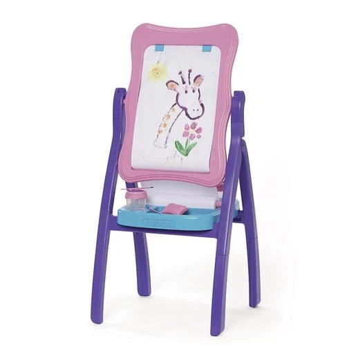 Universe of Imagination – Pizarra rosa con bandeja, que proporciona diferentes maneras de dibujar. Doble cara: pizarra para escribir con tiza y placa magnética. Compartimentos para guardar los accesorios. Incluye: dos pinceles, dos tazas de pintura y borrador. (Pintura y papel NO incluidos). Una pizarra Universe of Imagination que solo se puede encontrar en Toys R Us. Edad recomendada + 3 años.