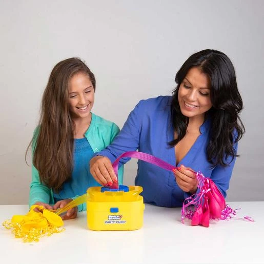 Solo tienes que encajarlos en la Bomba de Inflado Party, enchufarla, encenderla y ver cómo se inflan rápidamente.